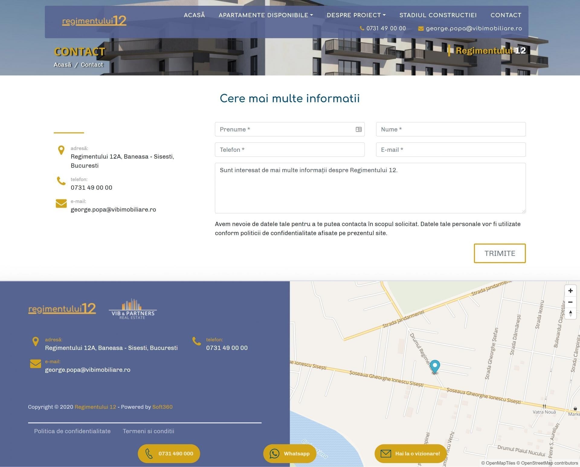 este un complex rezidențial nou format dintr-o cladire cu un total de 24 apartamente situat in Baneasa - Sisesti, pe strada Drumul Regimentului numărul 12A, la 25 minute de mers pe jos de statia de metrou Straulesti. Imobilul are regimul de inaltime S+P+2E+M si cuprinde 24 de apartamente noi cu 2 si 3 camere, precum si 24 de locuri de parcare.