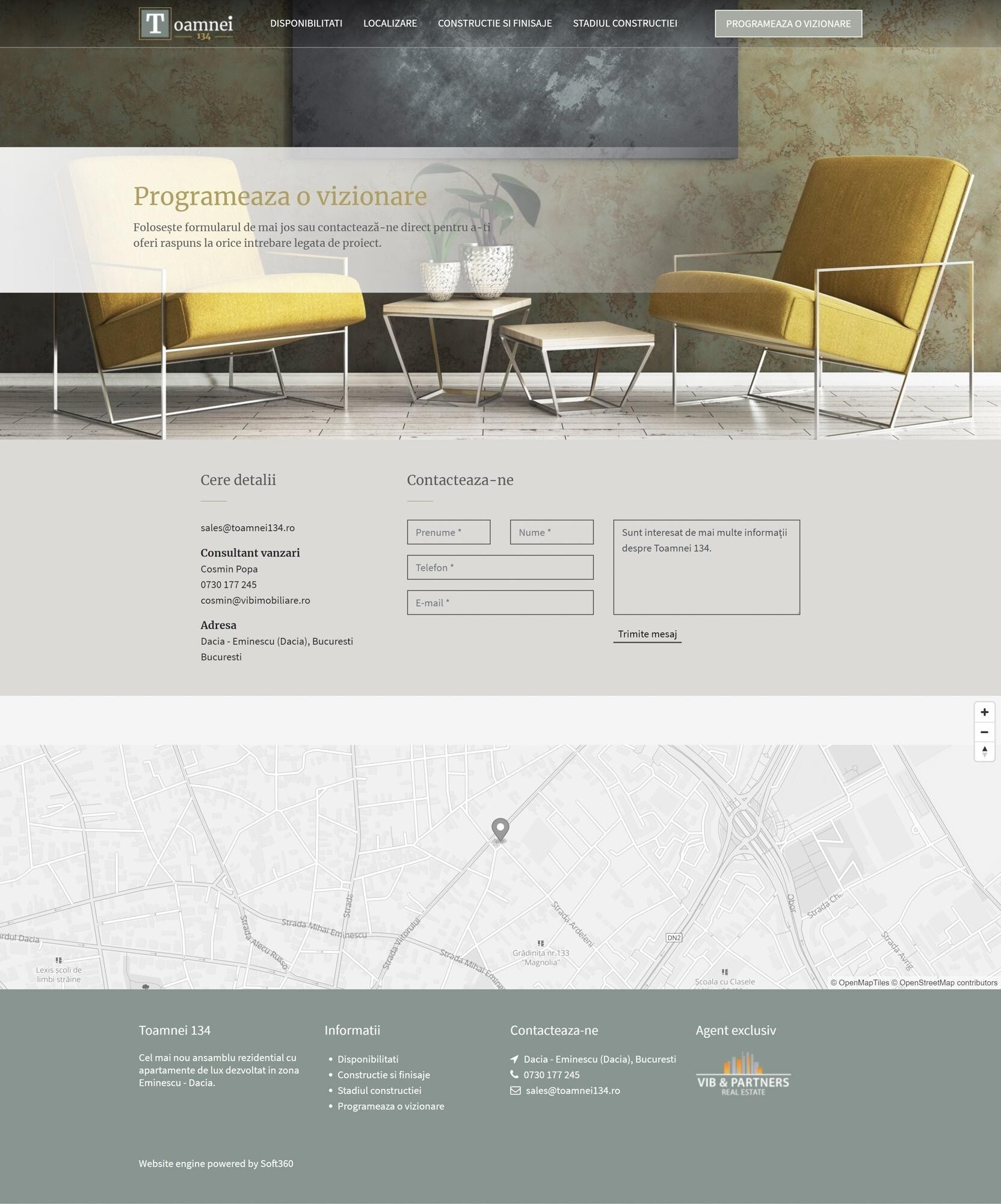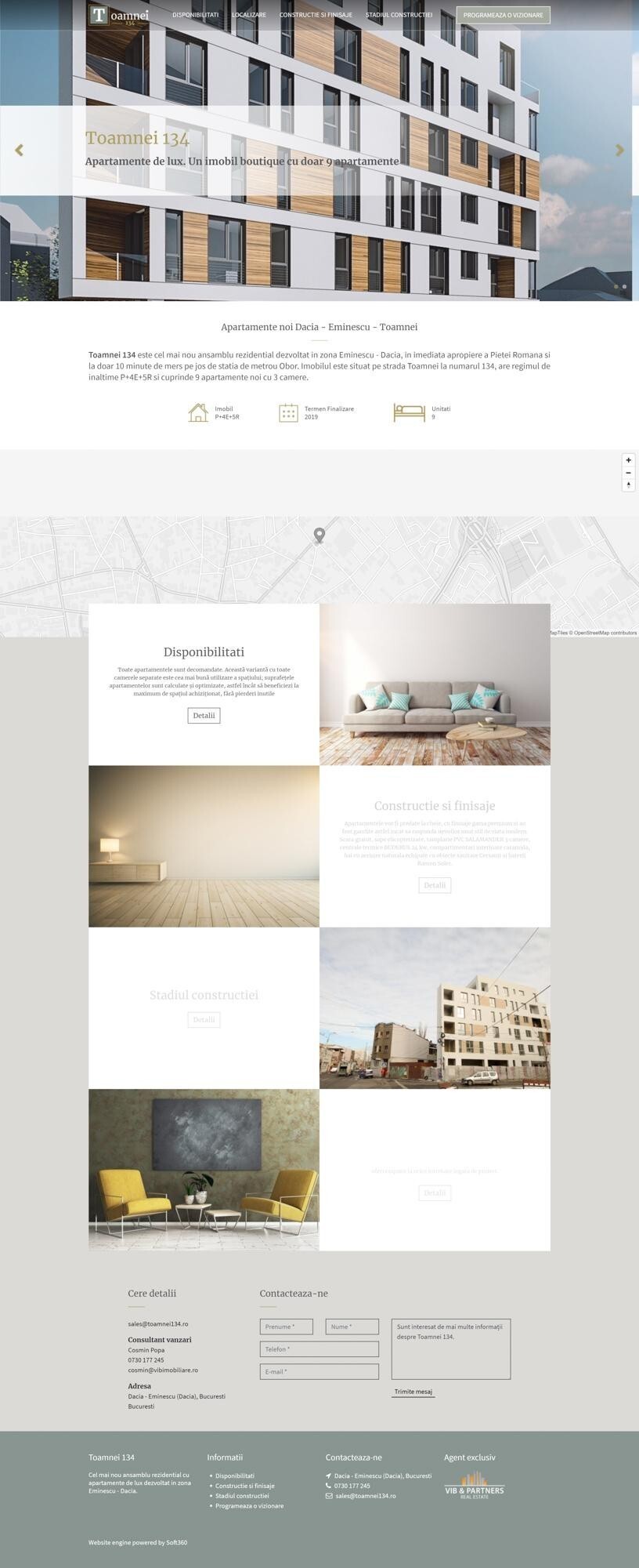 Toamnei 134 este cel mai nou ansamblu rezidential dezvoltat in zona Eminescu - Dacia, in imediata apropiere a Pietei Romana si la doar 10 minute de mers pe jos de statia de metrou Obor. Imobilul este situat pe strada Toamnei la numarul 134, are regimul de inaltime P+4E+5R si cuprinde 9 apartamente noi cu 3 camere.